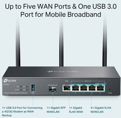 De TP-Link Omada AX3000 ER706W router is een krachtige dual-band router ontworpen voor zakelijke netwerken.